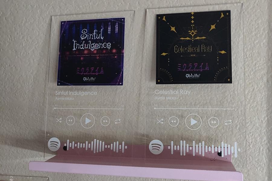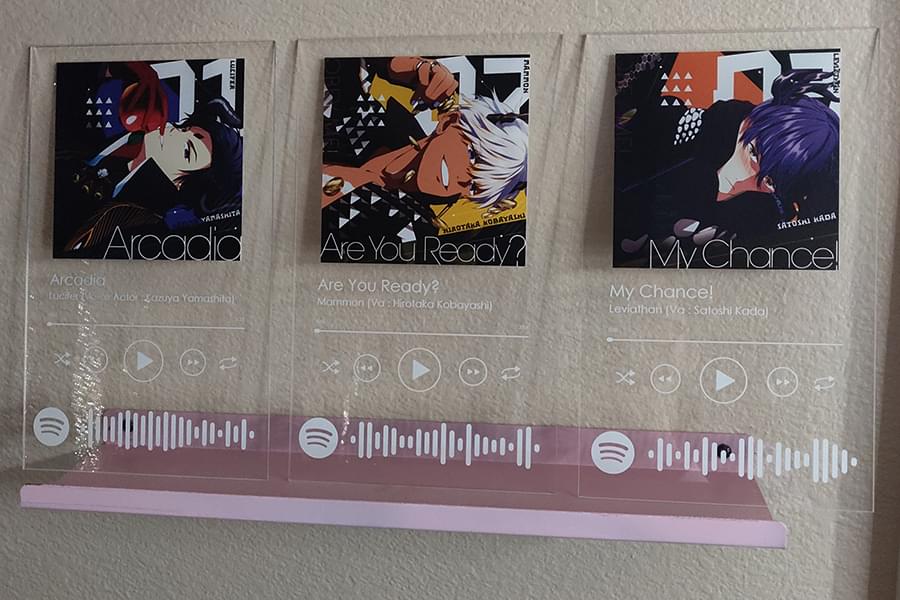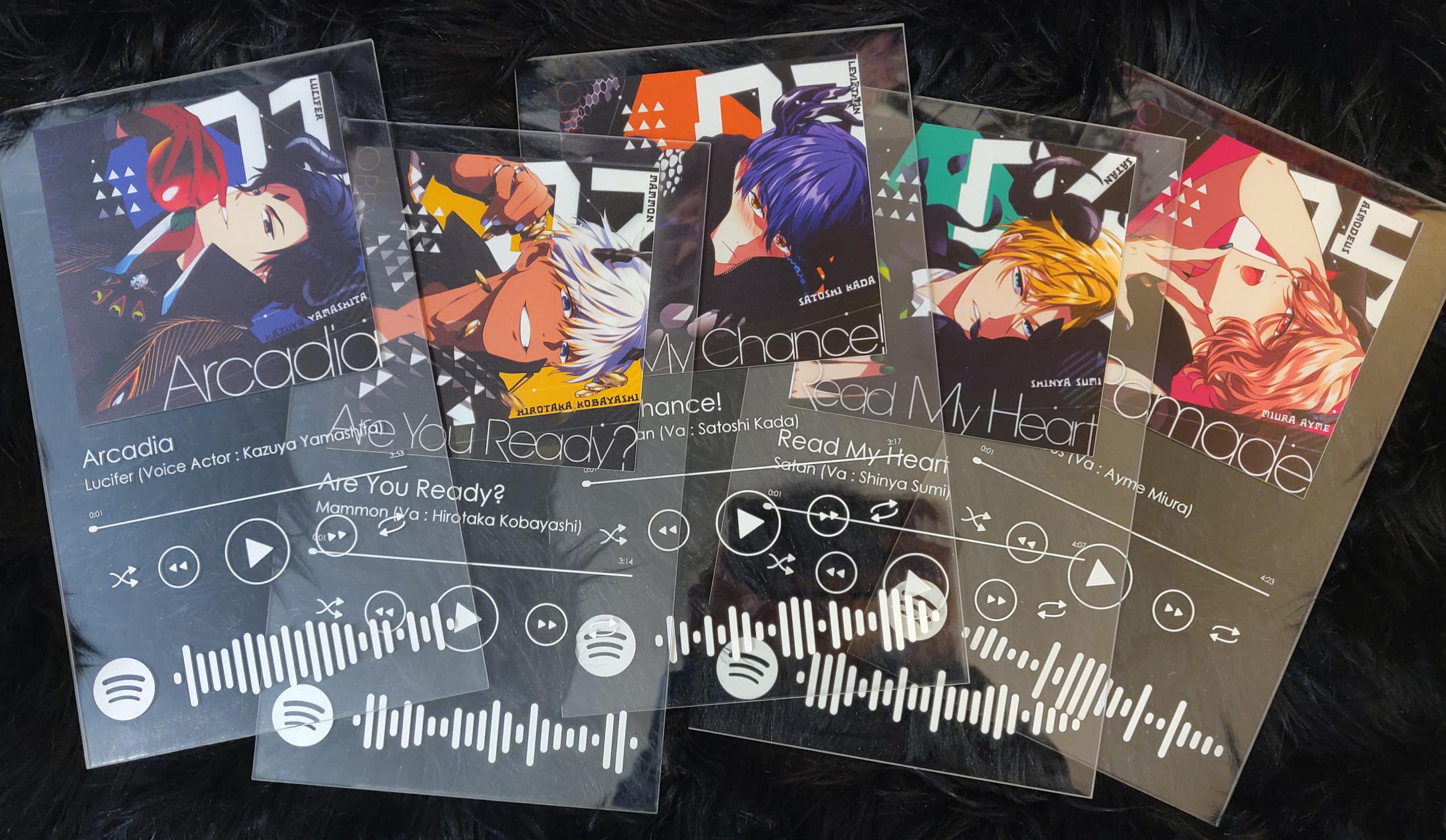 The music plaques are fanart and are NOT official merchandise from NTT Solmare. I created the music layout, the barcode is a Spotify barcode that links to the song, and the labor to cut and print on the acrylic is my own effort. The artwork printed on the acrylic plaques is official NTT Solmare artwork, and is therefore NOT FOR SALE.